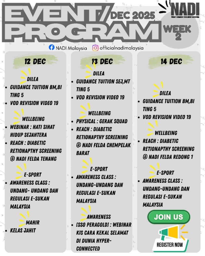 DECEMBER 2025 – 2ND WEEK SCHEDULE