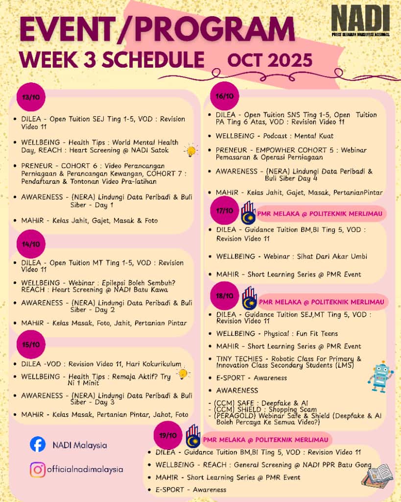 OCTOBER 2025 – 3RD WEEK SCHEDULE